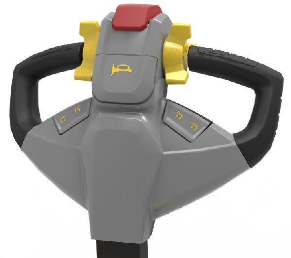 - Integrated Control Handle – One-hand operation for lift, drive, horn, turtle mode, and reverse.
