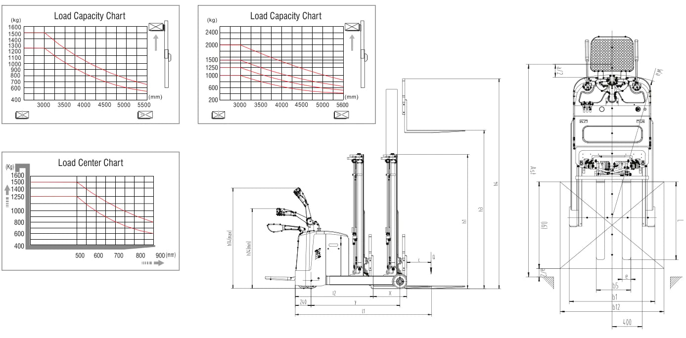 - Compact structure with a low center of gravity for safer operation in narrow aisles.