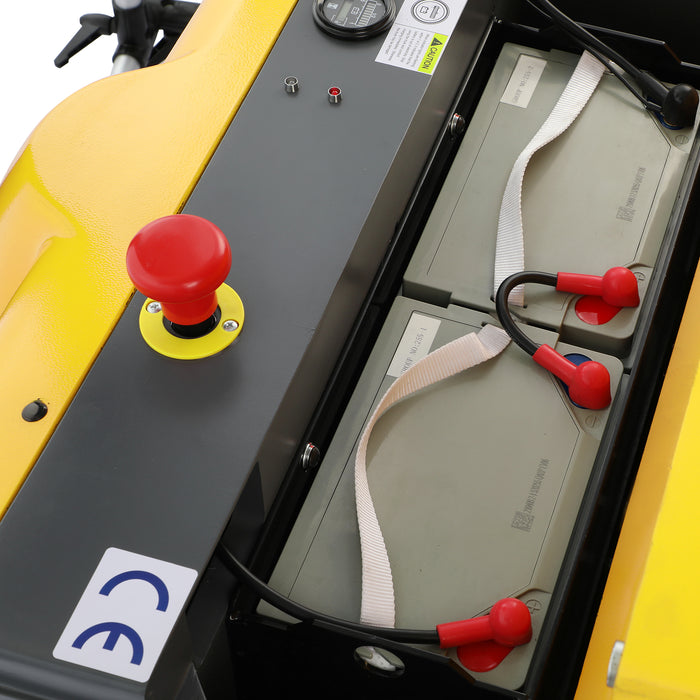 Powered by two 12V lead-acid batteries (24V total), this model features a built-in charger for simple plug-in charging from any standard 110V outlet. Typical charge time is 10–12 hours. Maintenance includes checking fluid levels every 3 months and cleaning the battery terminals to prevent corrosion.🛠️ Simple Maintenance with Front Access Panels