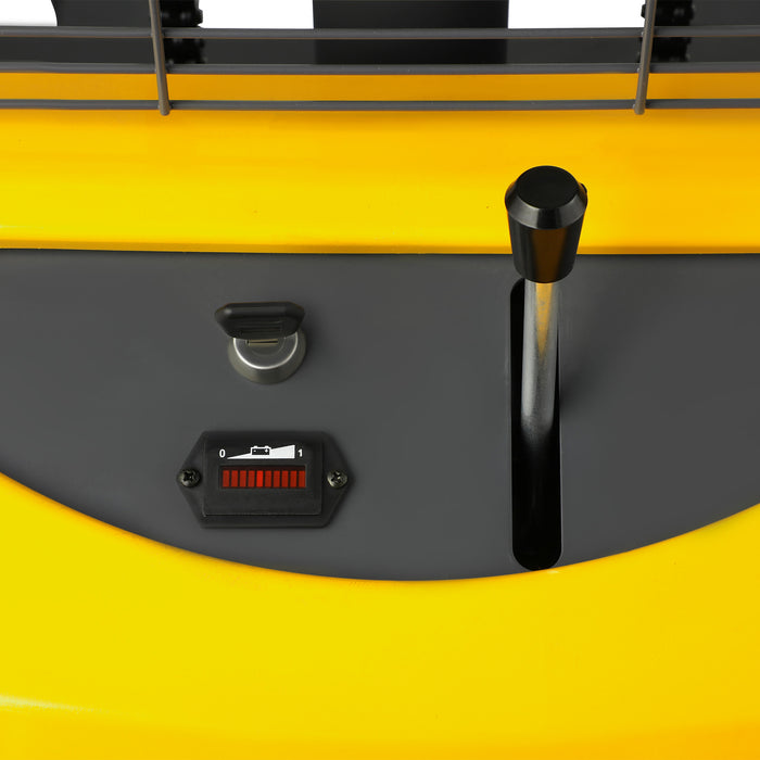 The CTD15BE-118 is a semi-electric stacker, designed for goods transportation on hard and flat ground. It combines a 3,300 lbs load capacity with a maximum lift height of 118". Its straddle leg design and adjustable forks are ideal for handling closed-bottom pallets, short-distance transport, and vertical stacking in warehouse and retail environments. The unit is manually moved and features an electric-powered hydraulic lift system for quiet, energy-efficient indoor use.⚙️ 12V Battery-Powered Hydraulic System